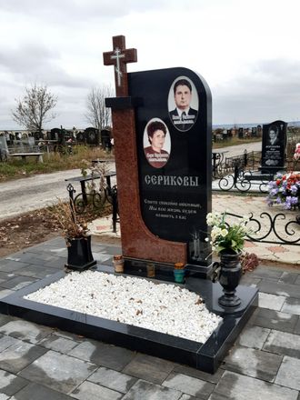 Гранит черный №50 Размер стелы: 120x60x5см. Общая высота: 135см. В стоимость входит: стела, тумба, цветник, художественные работы. Заказать: +7 (904) 533-12-60 +7 (904) 094-69-35