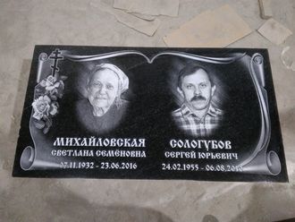 Гранит прямой для двоих №73 Размер стелы: 100x60x5см. Общая высота: 80см. В стоимость входит: стела, тумба, цветник, художественные работы. Заказать: +7 (904) 533-12-60 +7 (904) 094-69-35