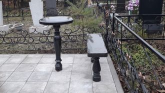 Стол, скамья из гранита Скамья - 100х25х5 см. Стол - 50х50х5 см. Заказать: +7 (904) 533-12-60 +7 (904) 094-69-35